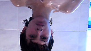 Skinny twink wanking off in the douche